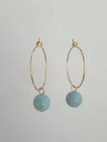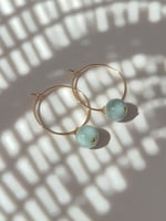 Boucles d'oreilles minimalistes composées de jolies perles rondes en jadeite vert d'eau pendantes sur de jolis anneaux en gold filled.